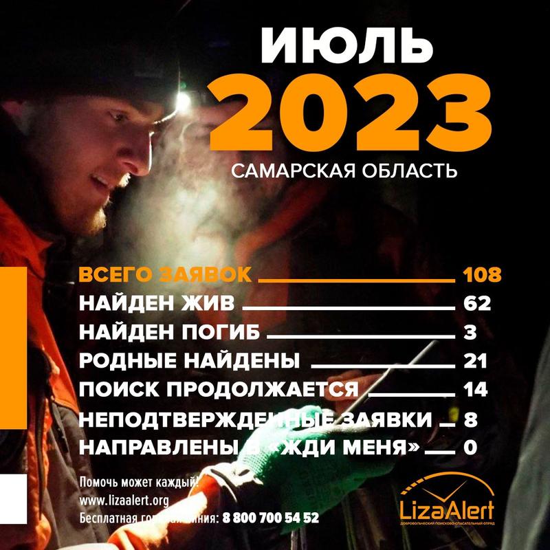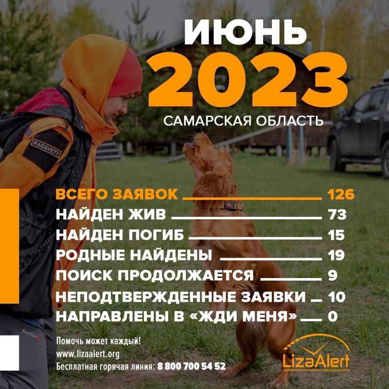 Больше обычного, 126 заявок поступило в отряд поиска пропавших людей «Лиза Алерт» по Самарской области только в июне этого года. Иногда приходило по 10 заявок за сутки. Даже до появления грибов в лесах губернии, июнь уже дал одни из самых больших показателей по числу обращений в отряд. Тогда силами его добровольцев, полиции, смежных структур, неравнодушных жителей из 126 пропавших были найдены живыми 73 человека. И 15 человек не успели спасти. Причем, трое из 15 погибших были найдены утонувшими. Июль принес отряду еще 109 заявок на поиск. Из них больше половины, 62 человека, смогли найти живыми. Дважды за июль люди терялись в лесу. Трое найдены погибшими, и опять же - все они утонули.