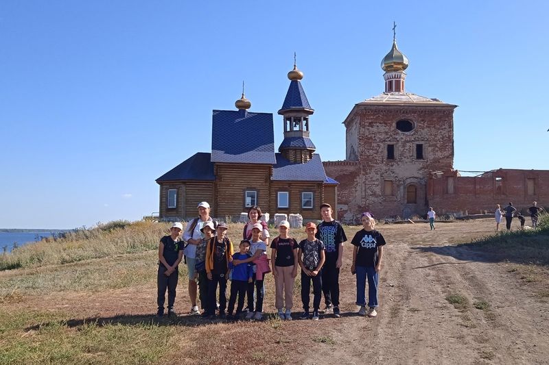 Юные туристы побывали в монастыре, исследовали берег Волги и поднялись на террикон