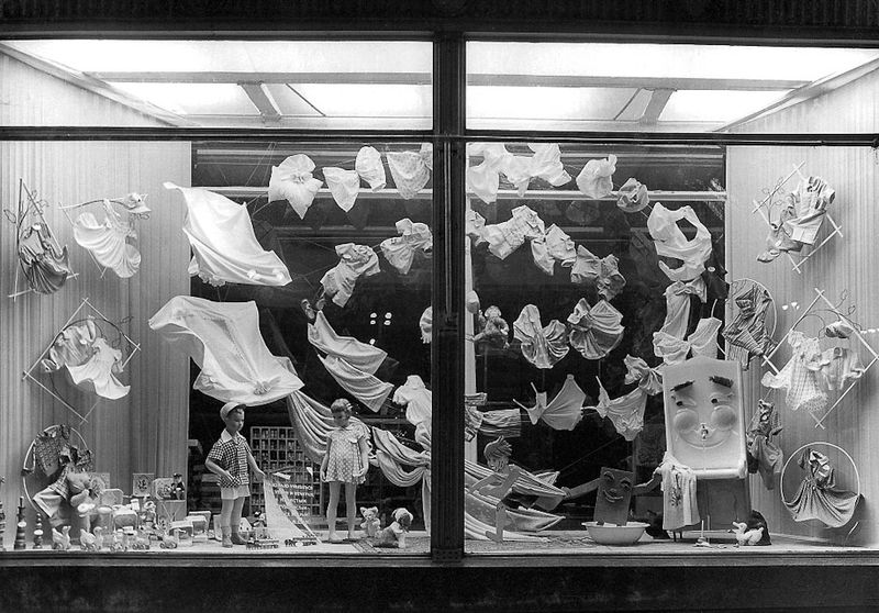 Это был целый мир - то, какие инсталляции представляли детскую одежду, школьную форму, модельки машин, кораблей и самолетов и, конечно, игрушки - современные детские магазины могли бы позавидовать.