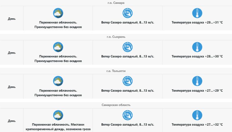 7,8,9 и 10 июля в Самарской области будет царить сухая погода со средней, дневной температурой в 28 градусов. Максимальная отметка в тени- 32.