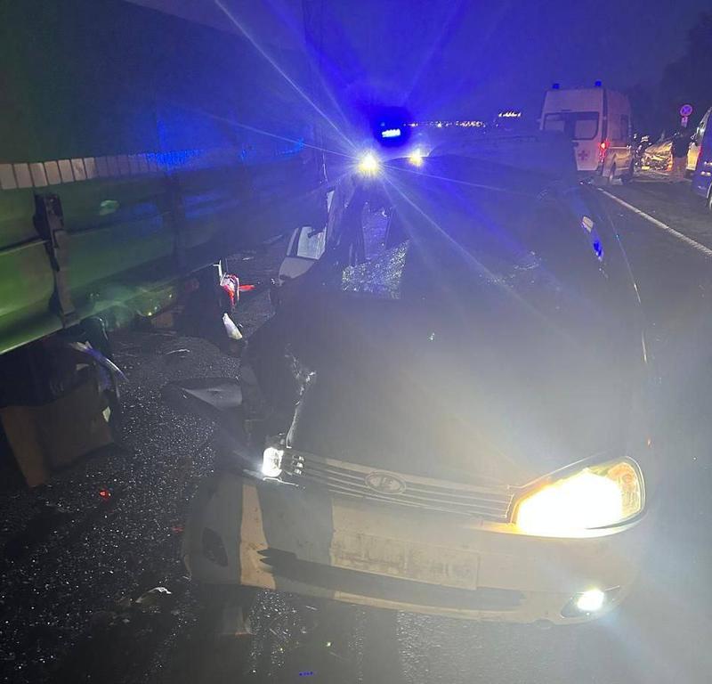 Сегодня ночью на трассе под Сызранью погиб маленький ребенок: он стал одной из двух смертельных жертв ДТП. Как сообщает ГУ МВД России по Самарской области и региональное управление МЧС, около 02:50 в Сызранском районе, на 876 км автомобильной дороги М-5 «Урал» произошло столкновение трех транспортных средств. На фото - месиво из автомобилей, столкнулись Калина, Toyota и большегруз Volvo. Пострадавшие, включая двух детей, с различными ранениями были госпитализированы в больницу. Двое погибли - женщина и ребенок 2019 года рождения. По данным прокуратуры Самарской области, раненых - шестеро. По предварительной версии, водитель легковой иномарки выехал на полосу встречного движения, где произошло столкновение с грузовиком, а затем с Калиной. На месте работает полиция, спасатели МЧС, медики.