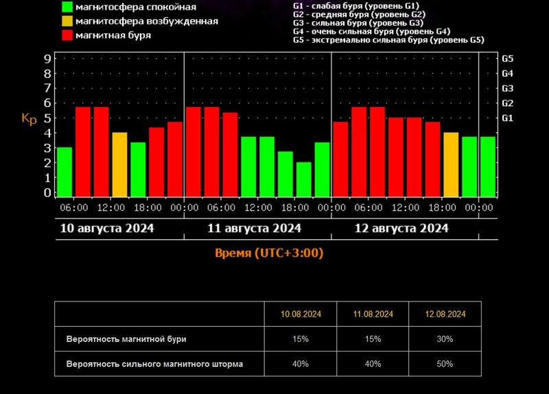 Вдобавок к погодным неприятностям, магнитные бури терзают и продолжат терзать нашу планету. Лучше всего ожидаемую картину показывают специалисты Лаборатории Солнца - как видно, вероятность магнитного шторма очень высока.