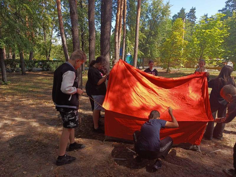 В сызранском лагере дети тушили почти настоящий пожар, в считанные минуты ставили палатку и спасали «раненых»