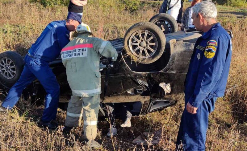 Печальное утро субботы: в Самарской области автомобиль Lada Granta «вылетел» в кювет и перевернулся