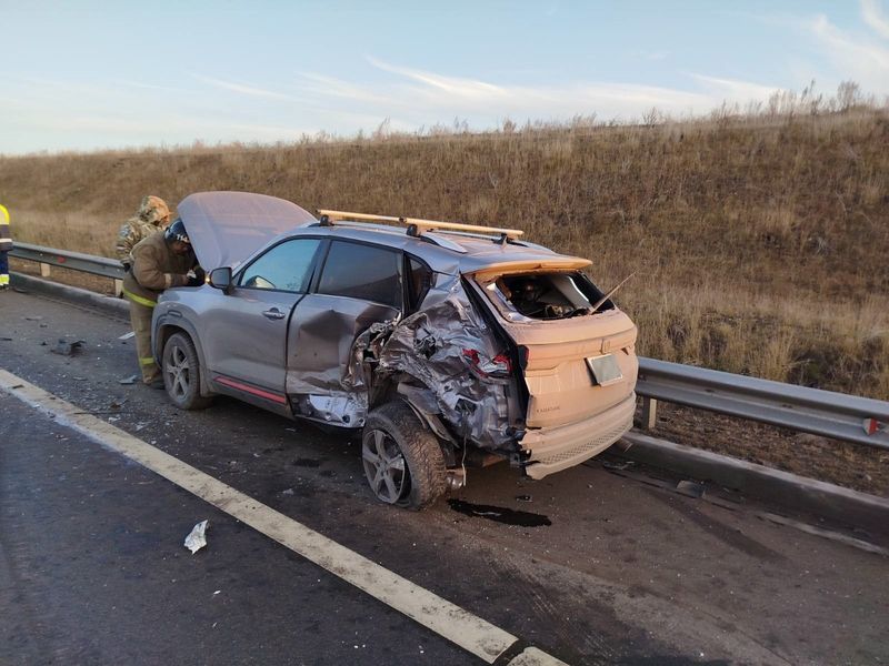 От удара Toyota опрокинулась на бок, судя по фото Центра по делам ГО, ПБ и ЧС. У китайской иномарки - разбитый