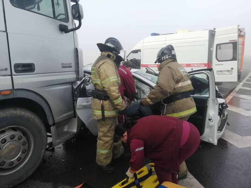 Крупное ДТП, в котором пострадали люди, произошло неподалеку от Сызрани на 16 км автодороги «Обход Тольятти». Дорога проходит через Шигонский район. 1 мая утром там столкнулись 3 автомобиля: Lada Vesta, Mitsubishi и DAF. Вызов на место массовой аварии поступил в 06:46; на трассу срочно прибыли сотрудники полиции, пожарные-спасатели, скорая помощь. Судя по фото, легковой автомобиль получил сильные повреждения, столкнувшись с большегрузом: заднюю часть авто буквально раскрошило от удара. «В результате ДТП водитель и пассажир Vesta, а также водитель Mitsubishi получили травмы и были госпитализированы», - передают пожарные-спасатели ПСЧ №114 села Шигоны. Спасатели отключили аккумуляторные батареи; сотрудники ГИБДД выясняли причины, по которым столкнулись большегрузы и легковое авто.
