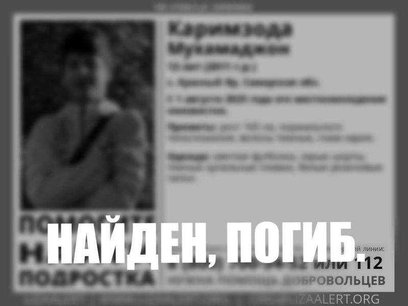 Страшную трагедию пережила семья, проживающая в Самарской области: о ней сегодня сообщили волонтеры группы «Лиза Алерт». В группу поиска пропавших людей обратились родные пропавшего 13-летнего мальчика. Каримзода Мухамаджон пропал из дома 1 августа - и родные не знали, где он. Высокого, для своих 13 лет, мальчика-таджика искали в Красном Яру, где он пропал, в лесу - но только сегодня стало понятно, что поиски бесполезны: ребенок погиб. Об этом, с выражением искренних соболезнований родным мальчика, сообщили добровольцы поисковой группы.