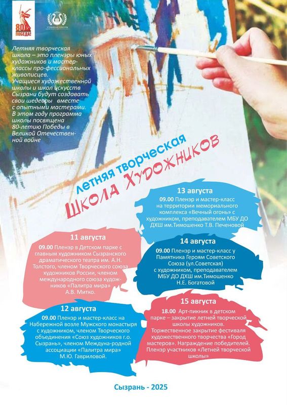 С 11 по 15 августа в ДХШ им. И.П. Тимошенко проходит Летняя творческая школа художников. Ее афиша - ниже.