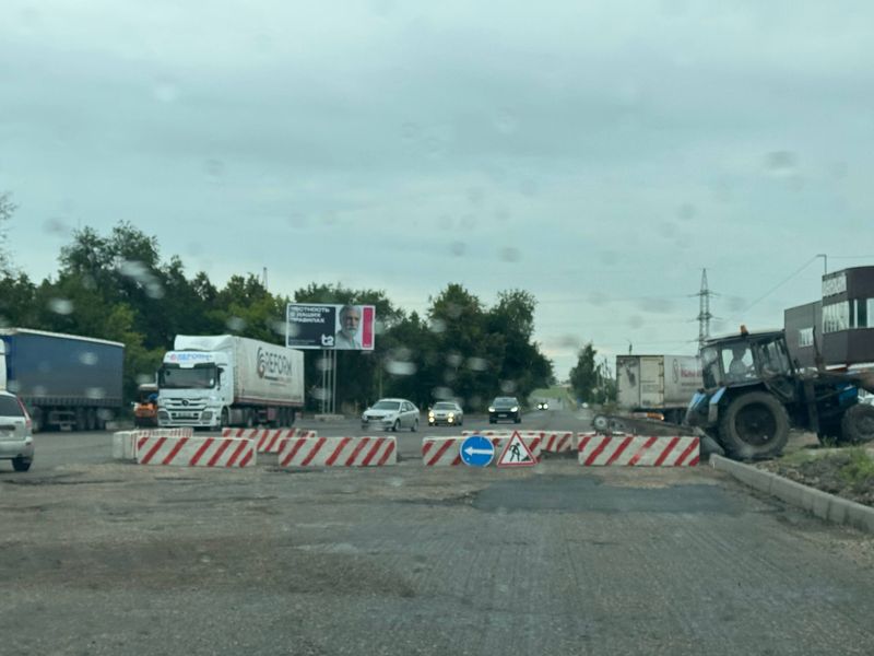 аккуратностью объезжать огороженный блоками участок дороги и искать