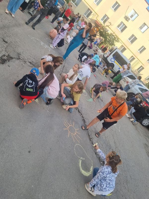 А детей ждали игры, конкурсы, рисунки на асфальте,