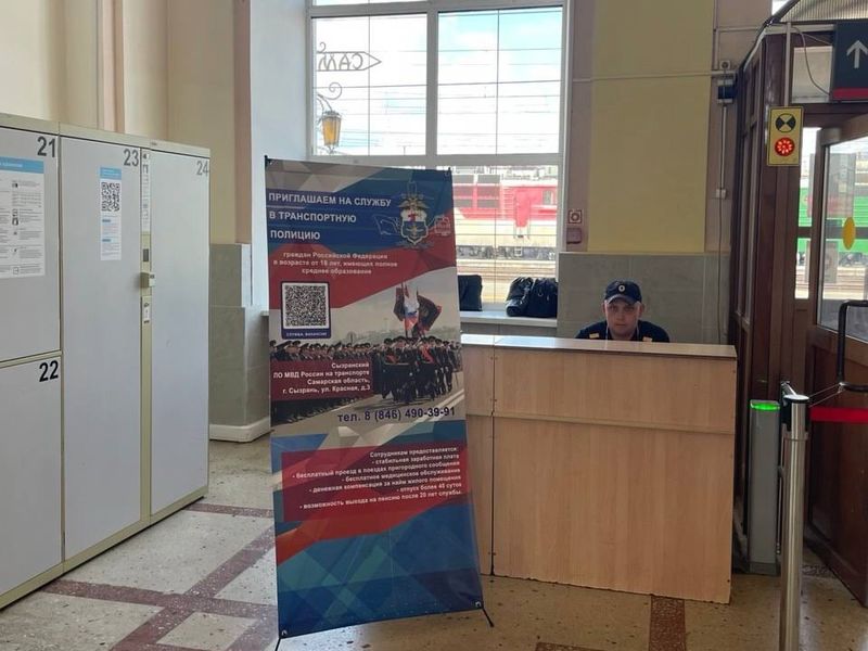 В Сызрани транспортные полицейские открыли рекрутинговый пункт в здании вокзала. На железнодорожном вокзале станции Сызрань-1 начал работу пункт отбора граждан на службу в органы внутренних дел. Сотрудники Сызранского ЛО МВД России на транспорте, принявшие участие в мероприятии, старались привлечь в ряды транспортной полиции мотивированных и физически подготовленных граждан. Посетители вокзала смогли получить информацию о вакансиях, об условиях прохождения службы и социальных гарантиях, предоставляемых сотрудникам органов внутренних дел, о порядке обучения в вузах МВД.