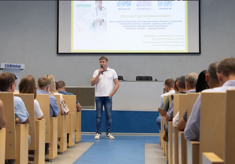 До конца недели Клуб здорового образа жизни «ТЯЖМАШ» официально пополнят новые члены. Помимо оздоровительных мероприятий объединение посещает лекции, спикерами которых становятся узкопрофильные специалисты, медики. Например сегодня, заводчане получат новые знания от руководителя сети интегративных клиник в Ульяновске, терапевта, педиатра, врача ультразвуковой диагностики, автора серии книг «Доктора Витаминкина» и «Чудо Здравница» Сергея Шагеева.
