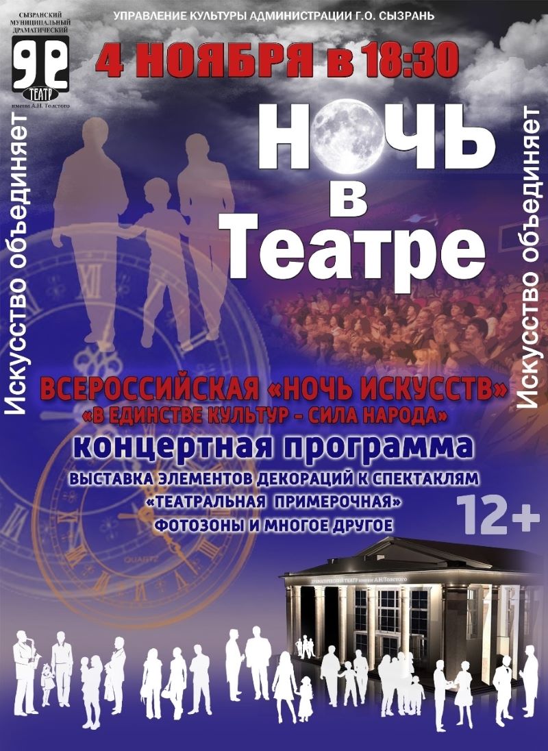 В течение недели в учреждениях культуры Сызрани состоятся патриотические акции, концерты, мастер-классы, выставки, интерактивные и познавательные программы. 31 октября в 14:00 в Драматическом театре состоится Торжественное мероприятие, посвященное Дню народного единства. Вход будет осуществляться по пригласительным. Праздничные концерты также состоятся в районных ДК. 3 октября в 16.00 в ДК п.Новокашпирский им. М.Жукова; в 18.00 в ДК п.Сердовино. 4 ноября в 11.00 ДК «Восток»; в 14.00 в ДК «Горизонт»; в 16.00 в ДК «Авангард»; в 19.00 в ДК «Строитель». В этом году ко Дню народного единства приурочена и программа ежегодной акции «Ночь искусств», которая пройдет 3 ноября.