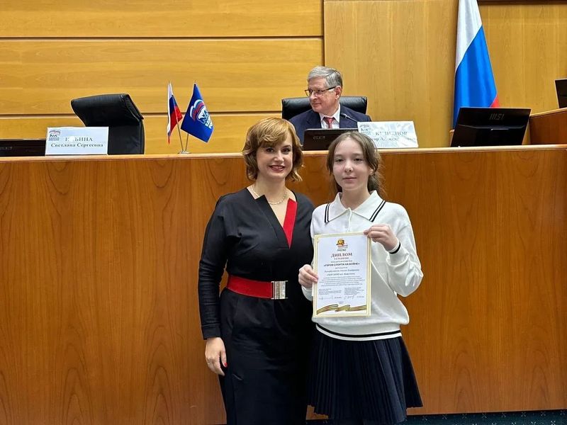 Одаренной школьнице вручили награду в Губдуме за рассказ о лучшем в мире креативном пловце из России