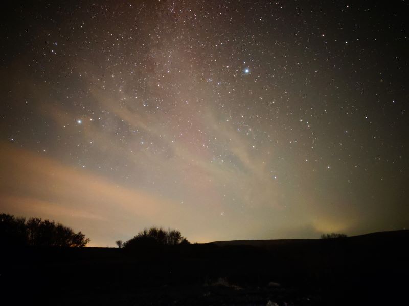 В четверг, 13 ноября, на Земле наблюдались одни из самых сильных полярных сияний десятилетия. Причиной их стали геомагнитные бури, которые на пике достигали уровня G4.3-G4.7, сообщает пресс-служба Лаборатории солнечной астрономии Института космических исследований и Института солнечно-земной физики Российской академии наук (ИКИ и ИСЗФ РАН). Учитывая нестабильные прогнозы погоды, увидеть полярное сияние было той еще лотереей, но самые любознательные астрономы Самарской области нашли прошедшей ночью точку, где сияние удалось зафиксировать. Правда для этого пришлось уехать далеко за пределы Самары.