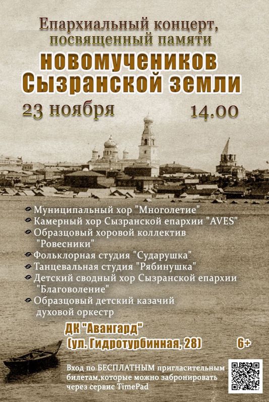 Особый концерт пройдет в Сызрани в следующее воскресенье, 23 ноября. Его организатором станет Сызранская епархия. В этот день в России отмечается память новомучеников и исповедников; этому событию, памяти новомучеников Сызранской земли (6+) будет посвящен концерт, который пройдет в ДК «Авангард». «В этот день по решению священного Синода отмечается память новомучеников, пострадавших в XX веке, - рассказал настоятель Феодоровского храма в поселке Новокашпирский игумен Марк. - В годы гонений многие приняли страдания и смерть - только в Сызрани не менее 600 человек были расстреляны в Заусиновском овраге, они пострадали от гонителей. Но далеко не все из тех, кто был погублен в XX веке, признаны Церковью новомучениками».