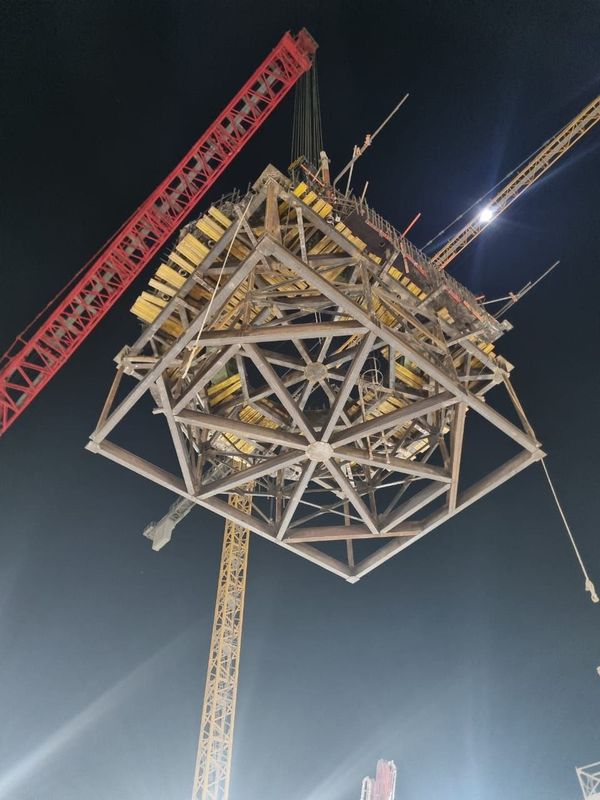 В шахте реактора третьего энергоблока завершается укрупнительная сборка фермы-консоли, а на четвертом - забетонирована фундаментная плита и стартовал процесс сборки фермы-консоли - пока на площадке.