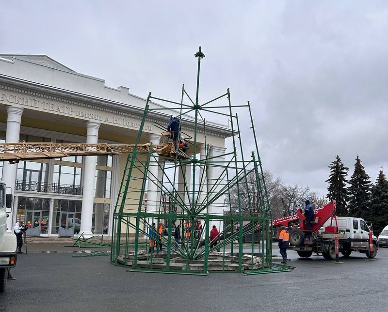 монтажу новогодних гирлянд. Вечером в центре Сызрани наверняка будет
