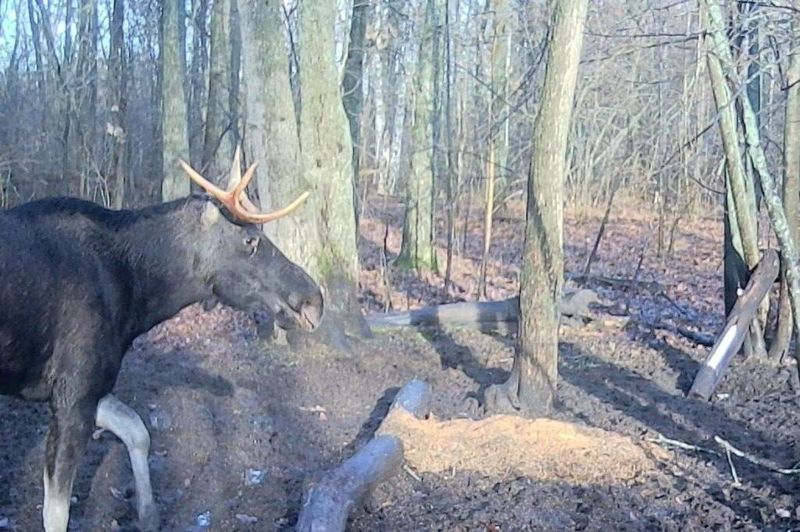 Лось на фото еще не сбросил свои рога и оттого опасен для своих