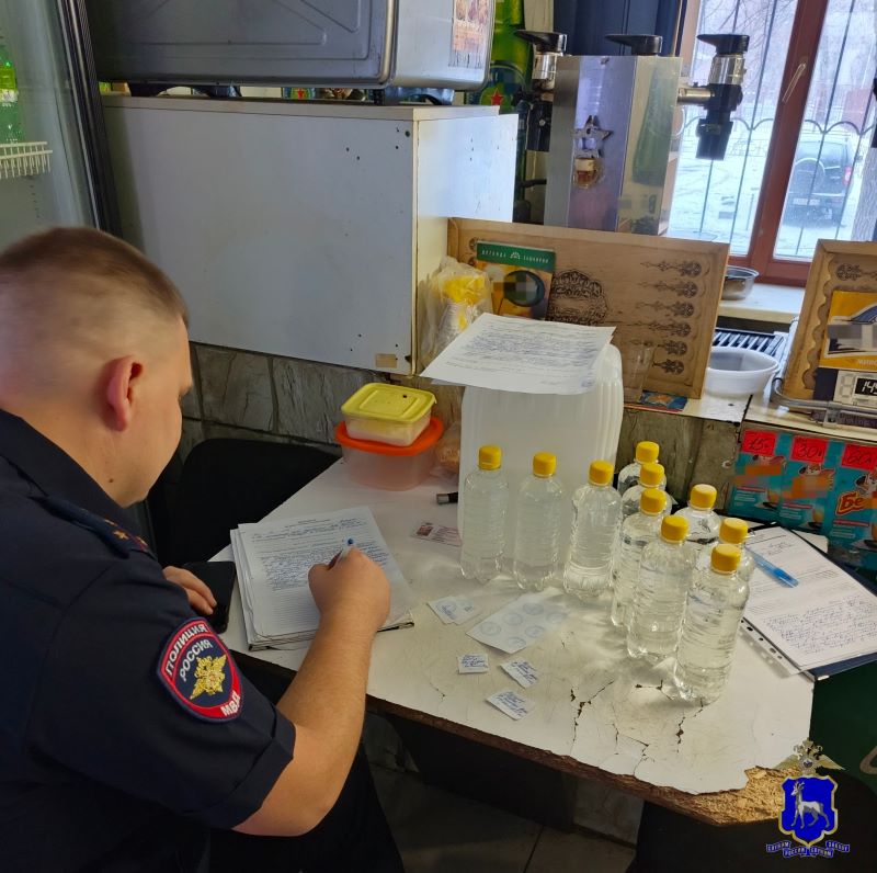 В ходе проверки сотрудники полиции задокументировали допущенные индивидуальным предпринимателем нарушения в сфере оборота алкогольной и спиртосодержащей продукции. Из незаконного оборота магазина изъято более 50 литров алкогольной продукции.