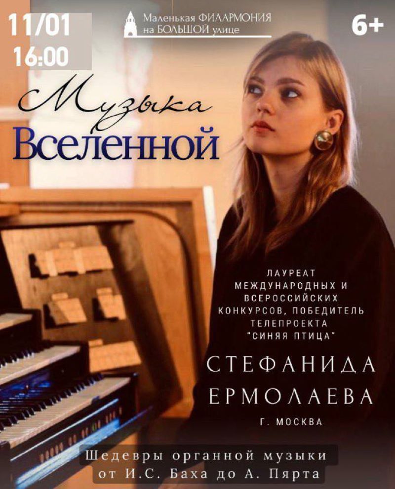 Менее чем через неделю в Сызрани стартует первый органный фестиваль. Билетов на концерты события не осталось, но уже 11 января жители и гости Сызрани смогут услышать «музыку вселенной» в исполнении Стефаниды Ермолаевой. Девушка является победителем международных и всероссийских конкурсов. В 2020 году Стефанида стала победителем телевизионного конкурса «Синяя птица», а чуть позже получила специальный приз «За творческие эксперименты» на премии «Органист года». Молодая, невероятно талантливая и уже очень известная московская органистка даст в городе концерт. Гостей Камерной филармонии ждет программа «Музыка вселенной: от Баха до Пярта». Подробности можно узнать у организатора фестиваля.