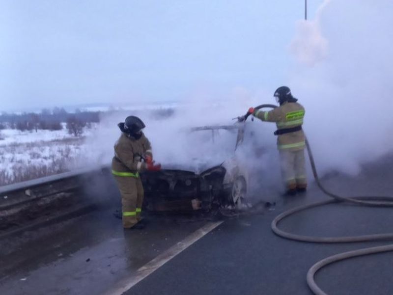 Прибывшие на трассу под Сызранью пожарные-спасатели обнаружили горящую иномарку