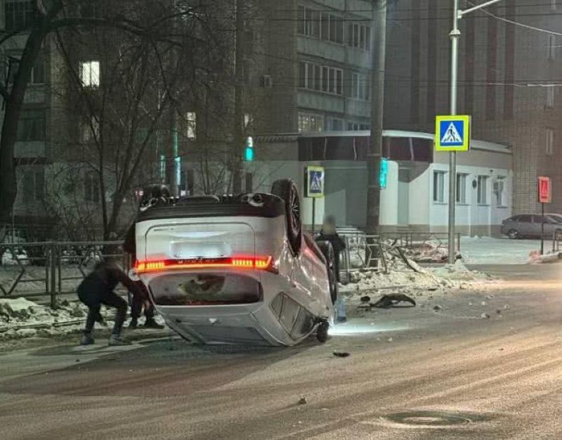 В центре Сызрани перевернулся белый кроссовер