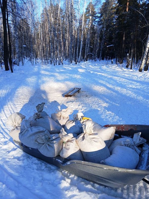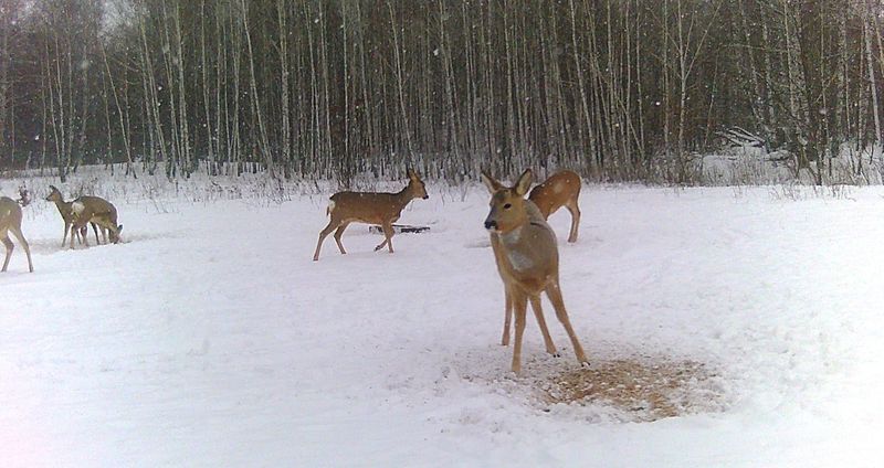 мешки с зерном, огромные куски соли, без которых косулям, оленям, лосям и